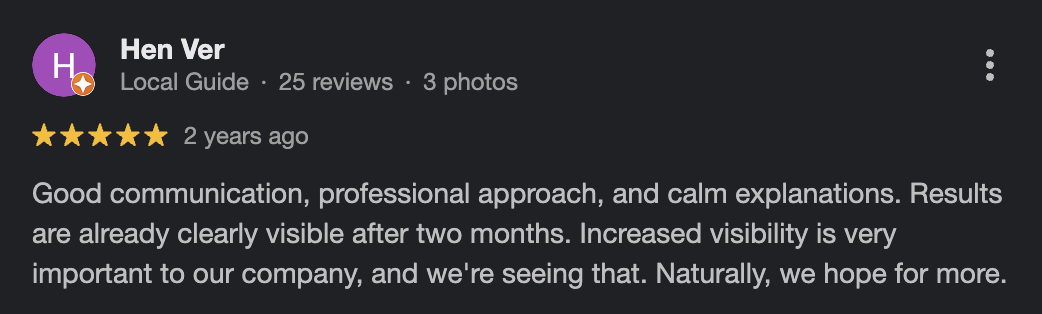 We don’t guarantee exact keyword rankings (Google is unpredictable), but we commit to transparent reporting, actionable milestones, and traffic/revenue goals tied to your business.